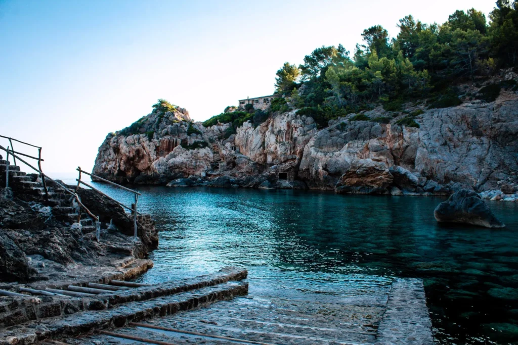 Es un verdadero tesoro para los amantes de la naturaleza salvaje. Esta cala de guijarros y rocas requiere una caminata algo exigente para llegar, lo que garantiza su baja afluencia. Las aguas son de un color azul profundo y vibrante, ideales para el snorkel. Está rodeada de pinos y vegetación baja, ofreciendo una experiencia de desconexión total en las playas al norte de Mallorca. Es perfecta para aventureros, naturistas, amantes del snorkel y la paz absoluta.