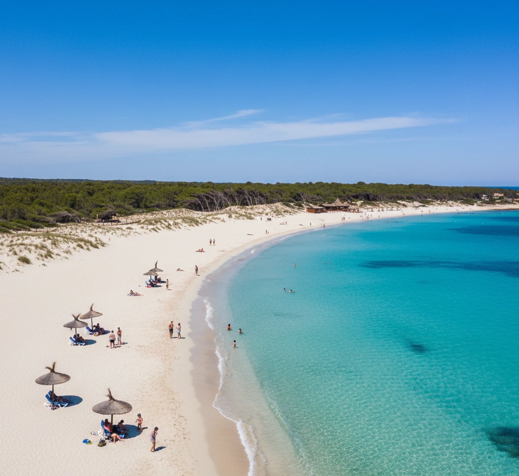 Cuando piensas en playas paradisíacas en Mallorca, Es Trenc es, sin duda, una de las primeras que viene a la mente. Esta extensa franja de arena blanca y fina, bañada por aguas de color turquesa intenso, es un auténtico espectáculo natural.
