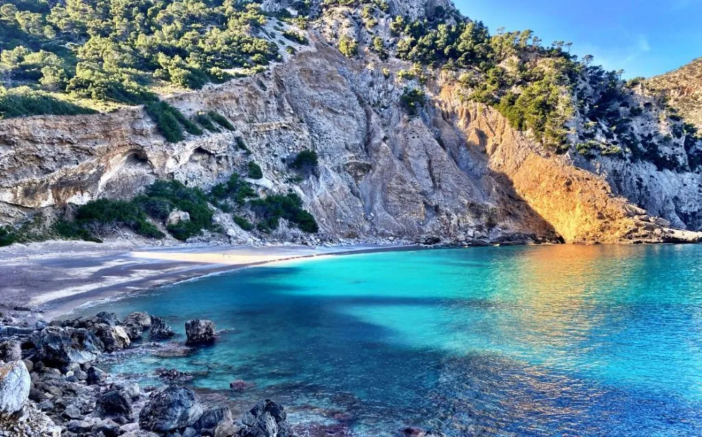 • Comment s’y rendre : RandonnĂ©e d’environ 45 minutes depuis la fin de la route, Ă  travers une forĂŞt. Par la mer, c’est l’accès le plus confortable et spectaculaire, rĂ©vĂ©lant la crique d’un coup.