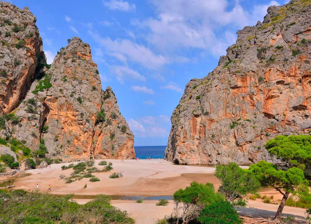 Plus qu’une plage, c’est l’embouchure d’un canyon sculptĂ© par le Torrent de Pareis. La crique est petite, faite de galets, mais l’environnement est ce qui en fait une merveille mondiale. L’accès Ă  pied nĂ©cessite de traverser un tunnel, s’ouvrant sur une vue saisissante des falaises qui se referment sur la mer. C’est la visite incontournable de la cĂ´te Nord de Majorque. C’est un environnement gĂ©ologique unique, des falaises monumentales, une crique de galets. Elle est idĂ©ale pour les aventuriers, les randonneurs, les photographes et les gĂ©ologues.